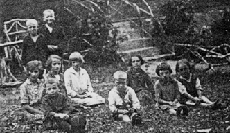 Schule Kuhberg Mädchen sitzend: 1. Anni Hampel, 2 Anna Höfler, 3. Liesl Krauße 4.. Maria Höfler, 5. Emma Höfler, 6. Maria Beigel